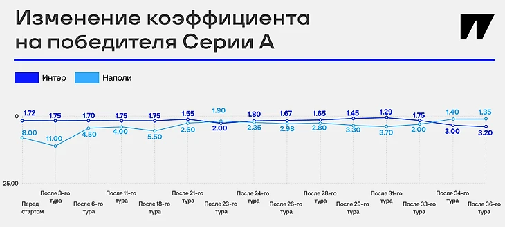 До начала чемпионата «Наполи» стоял только четвертым, уступая «Интеру», «Ювентусу» и «Милану». Даже после назначения Конте было реально поймать 8.00 на титул.