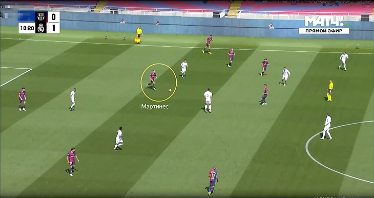 Но важную роль сыграли и привычные недоработки игроков группы атаки в фазе без мяча. Это проявлялось абсолютно на всех этапах. Здесь не оказывали давление в первой линии на Мартинеса. В итоге защитник «Барселоны» начал опасную атаку.