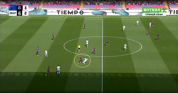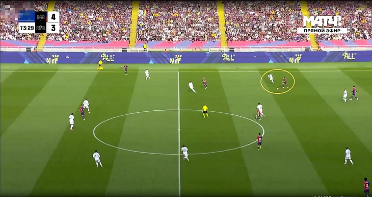 В данном эпизоде Ямаль пошел в обыгрыш в центре поля и потерял мяч. Гарсия в это время находился в высокой позиции, поэтому не мог успеть вернуться и закрыть свою позицию. В результате «Реал» развил атаку именно через это направление.