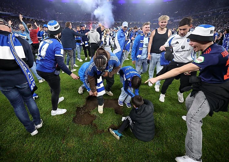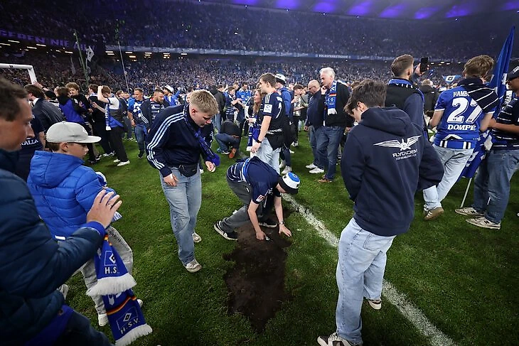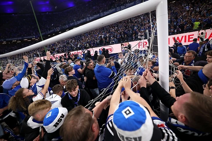 Разгром «Ульма» 6:1 на выходных наконец вывел «Гамбург» в Бундеслигу. После финального свистка на поле хлынула толпа фанатов с трибун.