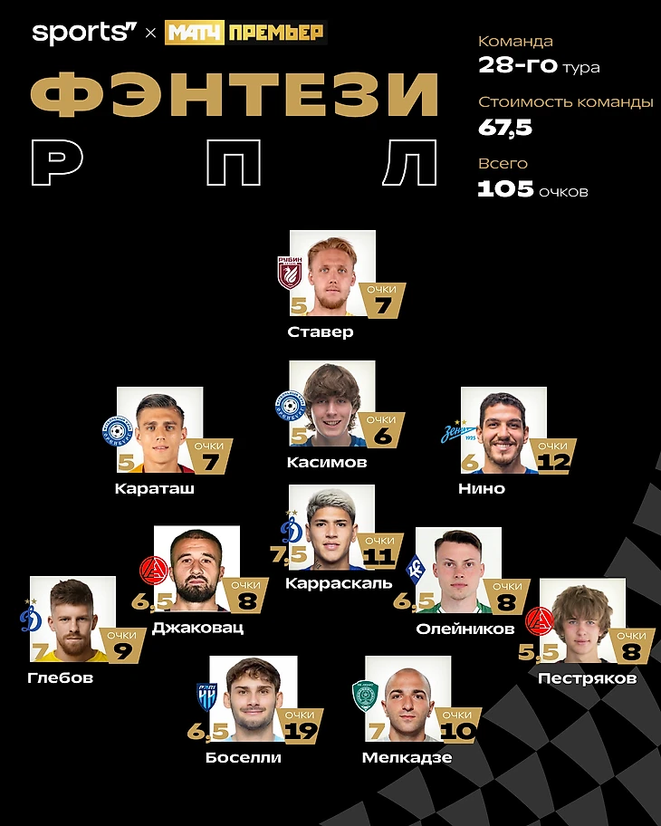 Перед вами сборная 28-го тура фэнтези-турнира РПЛ: