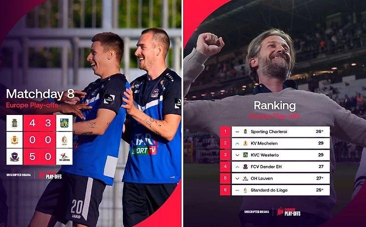 «Шарлеруа» досрочно выиграл второй плей-офф! Для этого ему нужны были победа над «Вестерло» и потеря очков от «Мехелена». Первый пункт он выполнил, хоть и не без труда: превратил 1:3 в 4:3, показав характер! А потом «зебрам» помог заклятый соперник по валлонскому дерби – «Стандард»: сыграл по нулям с «Мехеленом».