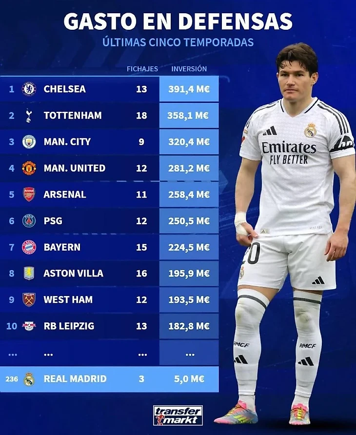 Деньги, потраченные клубами на укрепление обороны за последние 5 сезонов. Работа «Мадрида» впечатляет