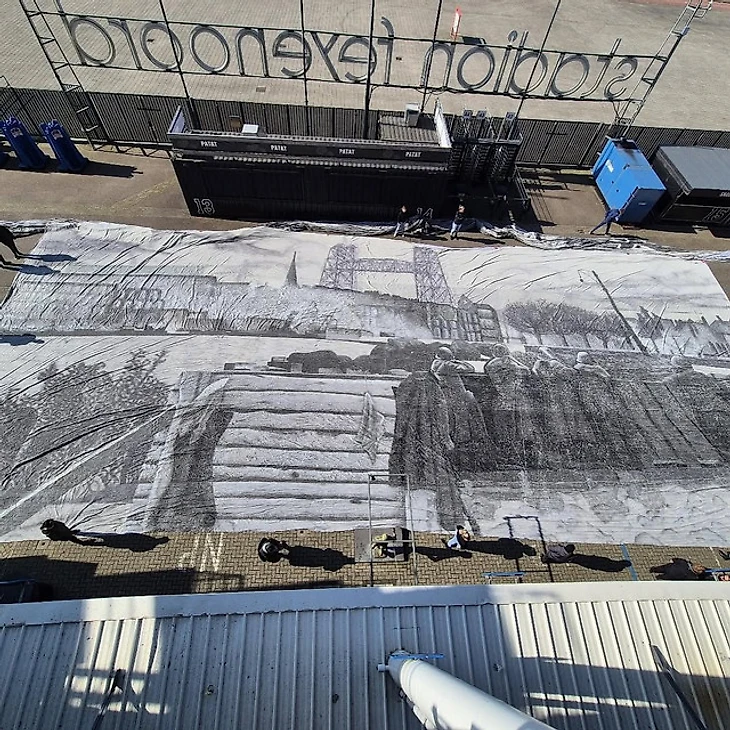 Остальные же руины были расчищены, а город со временем расцвел, причем расцвел по-новому, так как было принято решение отстраивать центр Роттердама в новом стиле, хотя обычно в таких случаях производят возвращение довоенного вида исторических зданий и кварталов. Коснулись новшества и порта Роттердама: сильно пострадав во время войны, к 1950 году он вновь начал полноценно функционировать, а в 1962 году стал самым крупным в мире. Это звание он удерживал до 2004 года, когда на первый план вышел порт в китайском Шанхае. Роттердам же остается самым крупным портом Европы и сегодня. Именно такое чудесное преображение родного города, возрожденного из пепла, и отобразили ультрас «южных», вывесив баннер с панорамой городских достопримечательностей в цветных тонах.