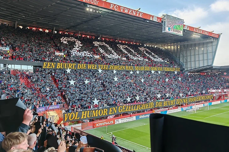 Но для ультрас «Твенте» игра, а вернее день игры с «АЗ», был особенным, ведь 25 лет назад в Энсхеде состоялась одна из самых больших трагедий в истории этого провинциального с населением чуть больше 150 тысяч жителей. Группировка «Vak-P» презентовала плашечный перфоманс в мрачных тонах на весь стадион и выложенной огромными буквами и цифрами датой «13 мая 2000 года».
