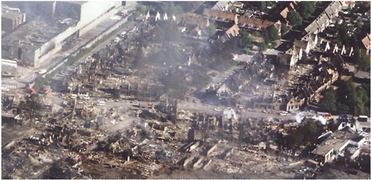 Другим грубым нарушением оказались те самые 2 контейнера, которые использовались незаконно, были расположены слишком близко друг к другу и не были разделены земляными ограждениями. Все это привело к уничтожению целого района Ромбек (спустя годы его восстановили), эвакуации 10 тысяч жителей, а также фактическому сожжению 15 улиц, из-за чего 1.250 человек остались без крыши над головой. Ущерб тех событий оценивается в полмиллиарда евро.