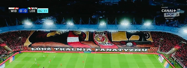 Переместимся в Польшу, где в таком же мало что решающем матче «Видзев» посреди недели принимал столичную «Легию». Хозяева досрочно обеспечили себе сохранение прописки в высшей лиге, тогда как «легионисты», проиграв ставшему в итоге на минувших выходных чемпионом «Леху», безнадежно отстали от первой тройки и уже ни за что не боролись. Тем более, что будущий евросезон Варшава спасла себе тяжелой победой в финале Кубка Польши над «Погонью» за счетом 4:3. В итоге самый титулованный клуб страны откровенно доигрывает сезон и готовится уже к следующему, так что футболисты и фанаты «Видзева» резонно рассчитывали на удачный исход игры, состоявшейся в четверг. Кибицы «Красной Армии» даже подготовили шикарную оправу под лозунгом «Лодзинская ткацкая фабрика фанатизма», на которой человек вручную и с помощью швейной машинки вяжет красно-белый шарф.