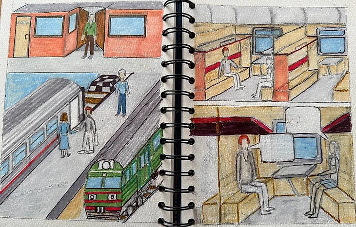 — Увидел в интернете, купил себе блокнот – скетчбук. Еду в автобусе – что-то пришло в голову – рисую.