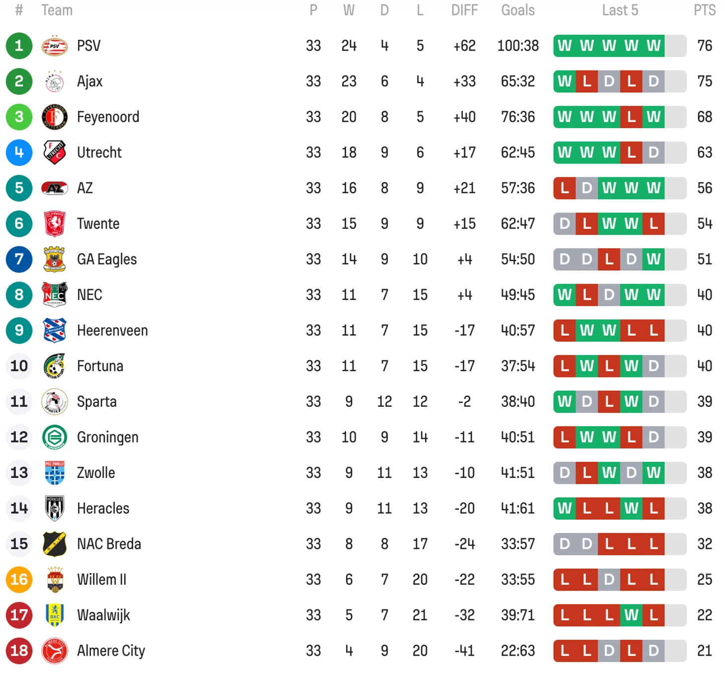 Превью 34-го (последнего) тура Эредивизи 🇳🇱 | Развязка чемпионской гонки: ПСВ или «Аякс»?
