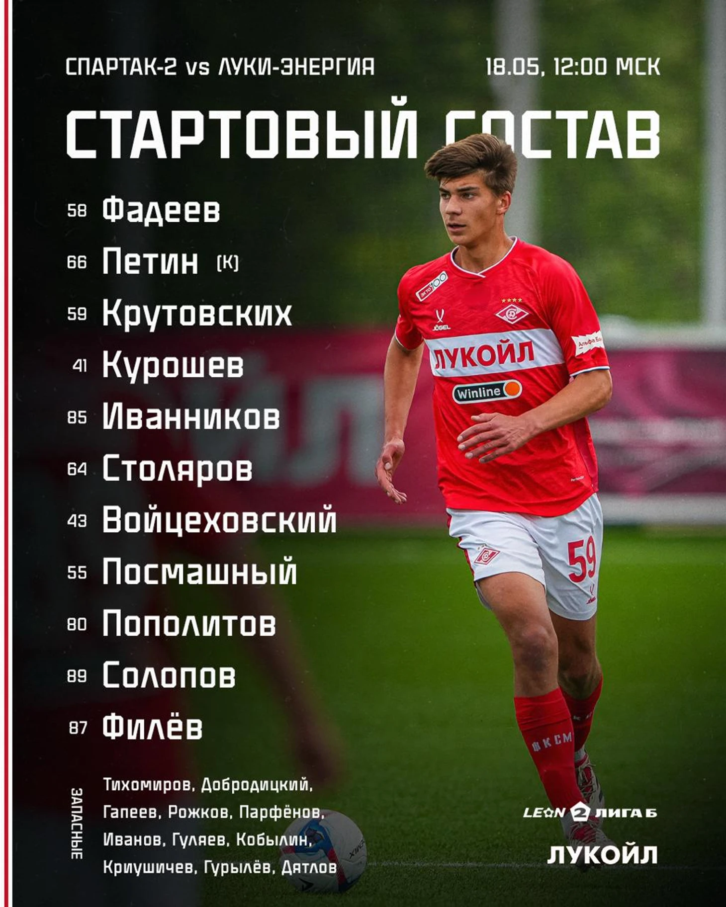 Состав. Третий матч подряд «Спартак-2» начинал в одном и том же составе. Отметим также возвращение на поле после травмы Антона Гурылёва, который вынужденно заменил Арсения Филёва в первом тайме.