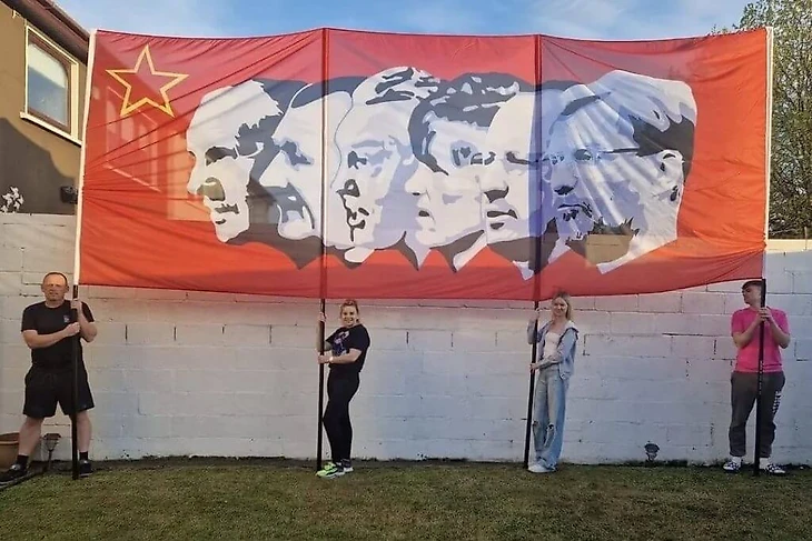 В его основу легла картина местного художника Дэвида Нива, которого вдохновил символ «Пять глав коммунизма», изображающий Карла Маркса, Фридриха Энгельса, Владимира Ленина, Иосифа Сталина и Мао Цзэдуна.