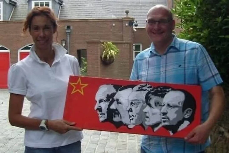 После ухода Бенитеса в 2010 году они подарили холст с баннером жене испанца, Монтсе, и были рады увидеть его по телевизору на стене его офиса в Мадриде.