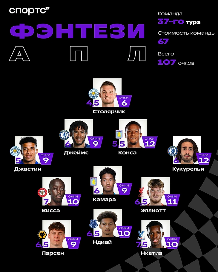 Это самые эффективные игроки 37-го тура в фэнтези АПЛ на Спортсе’‘