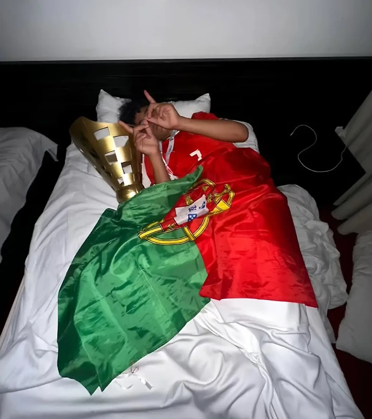 После игры Криштиану сфотографировался с трофеем в кровати, прямо как Лео Месси после победы на ЧМ: