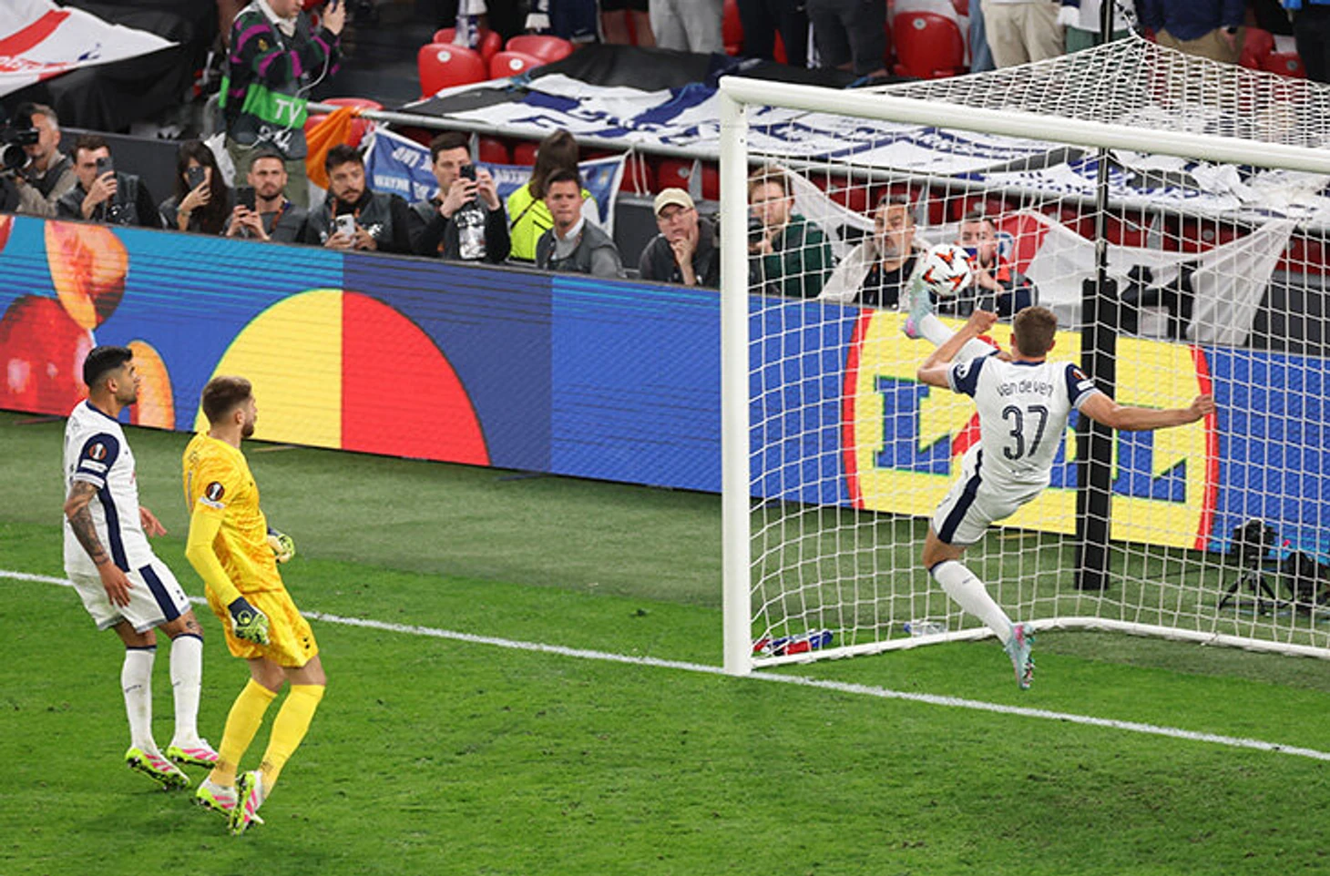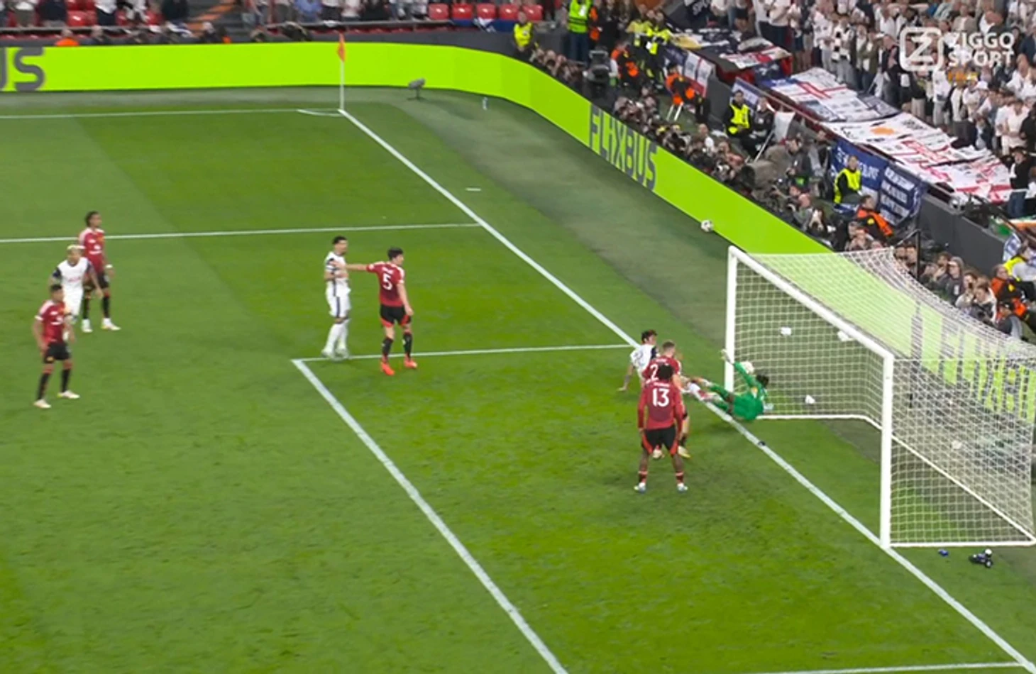 Гульермо Викарио плохо сыграл на выходе из ворот, он не зафиксировал мяч. Расмус Хейлунд головой вносил мяч в пустой створ, ничего не могло помешать Но тут включился Микки ван де Вен – космически вынес мяч.