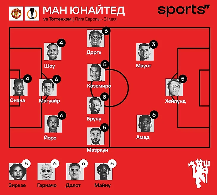 Мэйсон Маунт (3) – очень блеклый матч, основные действия от него были без мяча, хотя играл десяткой. Но виноваты в том числе инструкции Рубена Аморима.