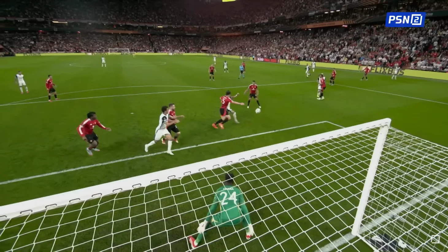 Эпизод с пропущенным – фактически, первый целостный момент у команды Постекоглу с игры. По таким подачам сложно действовать, так как они уходящие и исполняются специально с отскоком перед вратарем или защитниками. В них крайне важно сыграть либо в одно (первое) касание – не получилось ни у Магуайра, ни у Шоу, либо сыграть на выходе, пытаясь предугадать траекторию – этого мы тоже не увидели у Онана. По правде сказать, в финале Андре сильно нервничал и не страховал партнеров в куда более однозначных для прочтения ситуациях.