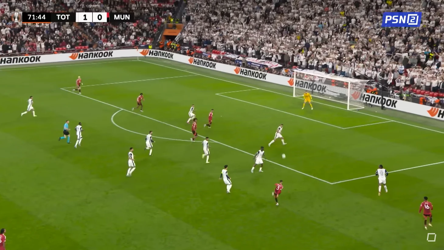 Если в первом тайме крайние нападающие / инсайды в лице Амада и Мэйсона располагались в широких позициях, то во втором чаще стали происходить их «заходы» вовнутрь, в центр – это стало важным элементом в преодолении прессинга «шпор». Также это имело свои плоды и в создании моментов – через насыщение центральной зоны провоцировали выдвижение центральных защитников и наполняли зоны после отыгрыша – так пришел момент Бруну с ударом головой в падении.