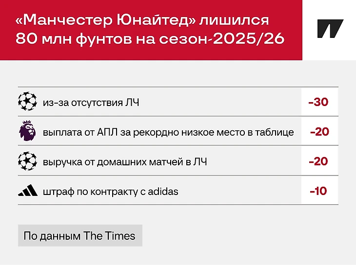 ● В контракте «МЮ» с adidas прописан штраф в 10 млн фунтов за отсутствие Лиги чемпионов в двух сезонах подряд.