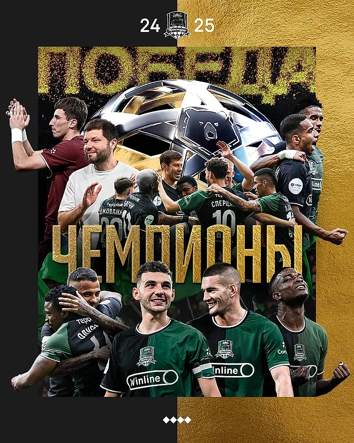 А теперь комментарий по матчу. Первый тайм был очень волнительным, игра шла неуверенно, и я уже начал переживать, что если вдруг динамовцы откроют счёт, то «Краснодар» посыпется и проиграет чемпионскую гонку. Не хочу здесь затрагивать политику Гусева и некоторых игроков и болельщиков «Динамо» с их высказываниями о мести… Как по мне, это неспортивные сопли. Второй тайм начался с сумбурного гола. Тот самый необходимый чемпионский фарт, который, к слову, помог и Кривцову забить второй мяч, после которого игра наконец успокоилась. Честно говоря, до 93 минуты я всё ещё боялся вскрывать шампанское, ибо прекрасно помню «Валенсию» и 2018 год… Но не будем о грустном. Третий гол, тоже забитый не без доли везения, поставил красивую точку в этом сезоне. Вот то, что называется «Вкусно и точка».)