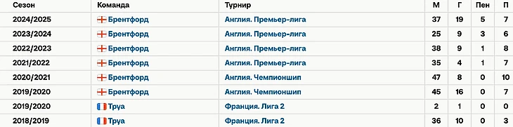 А давайте ненадолго вернемся в 2018-й, когда Мбемо подписал контракт с английским клубом. Знаете, где его нашли проницательные скауты «Брентфорда»? Во второй французской лиге. Мбемо выступал за «Труа», где, выдав скромные 10+3 за 36 матчей, привлек внимание клуба из Чемпионшипа.