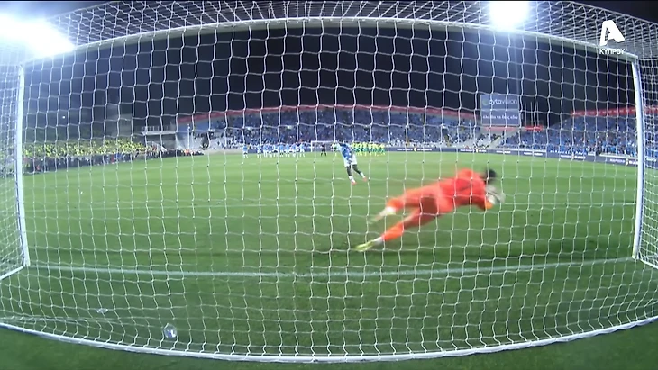 Но всё изменилось в течение двух минут. Аломерович сначала вытащил удар Гольдара — мощный, направленный в угол, — а затем в ключевой момент отразил решающий пенальти от Домингоса Кины в противоположный угол. За мгновения АЕК прошёл от края пропасти до триумфа.