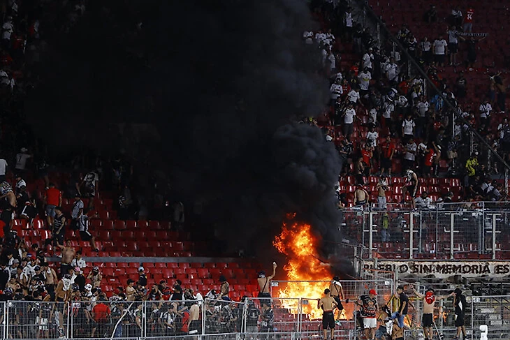 Беспорядки на стадионе частое явление в Чили: в 2024 году фанаты «Коло Коло» подожгли трибуну из-за минуты молчания в честь утонувшего президента