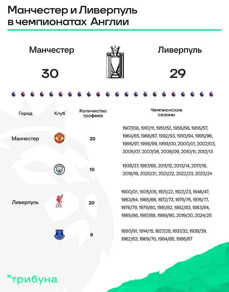 «Ливерпуль» сравнялся с МЮ по количеству титулов, но Манчестер опережает центр Мерсисайда в общем зачёте