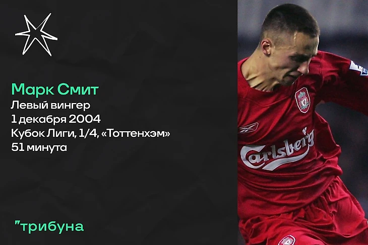 Выпускник клубной академии «Ливерпуля» Марк Смит тоже провел лишь один матч за взрослую команду коллектива. Случилось это в матче Кубка Лиги с лондонским «Тоттенхэмом» в декабре 2004 года. Тогда он заменил во втором тайме испанца Антонио Нуньеса, а «красные» одержали итоговую победу в серии послематчевых пенальти. Дальнейшая карьера Смита удачной не получилась — сначала он немного поиграл на уровне английских подвалов, а затем на долгие годы связал свою жизнь с Чемпионатом Уэльса. Там Марк единожды стал Чемпионом в составе «Бангор Сити». Завершил карьеру английский нападающий летом 2014 года. Сейчас ему сорок лет.