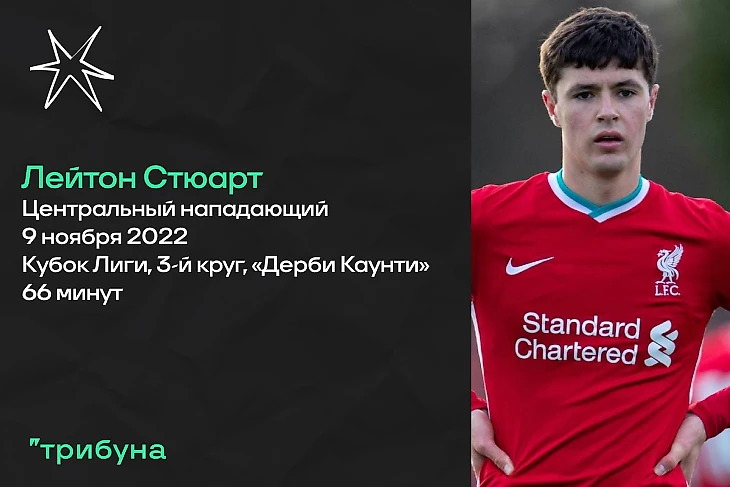 Еще один выпускник клубной академии «Ливерпуля», проведший лишь один поединок за главную команду. Форвард Лейтон Стюарт в игре Кубка Лиги с «Дерби», выйдя в стартовом составе. Во втором тайме его сменил Дарвин Нуньес, а сама встреча завершилась победой «красных» по пенальти. Больше англичанин за основу не выступал. В 2023 году уроженец Ливерпуля перешел в «Престон», а минувший сезон проводил в аренде в Швейцарии, где защищал цвета «Туна» из второго по силе дивизиона. Бывшему футболисту молодежной сборной Англии двадцать два года.