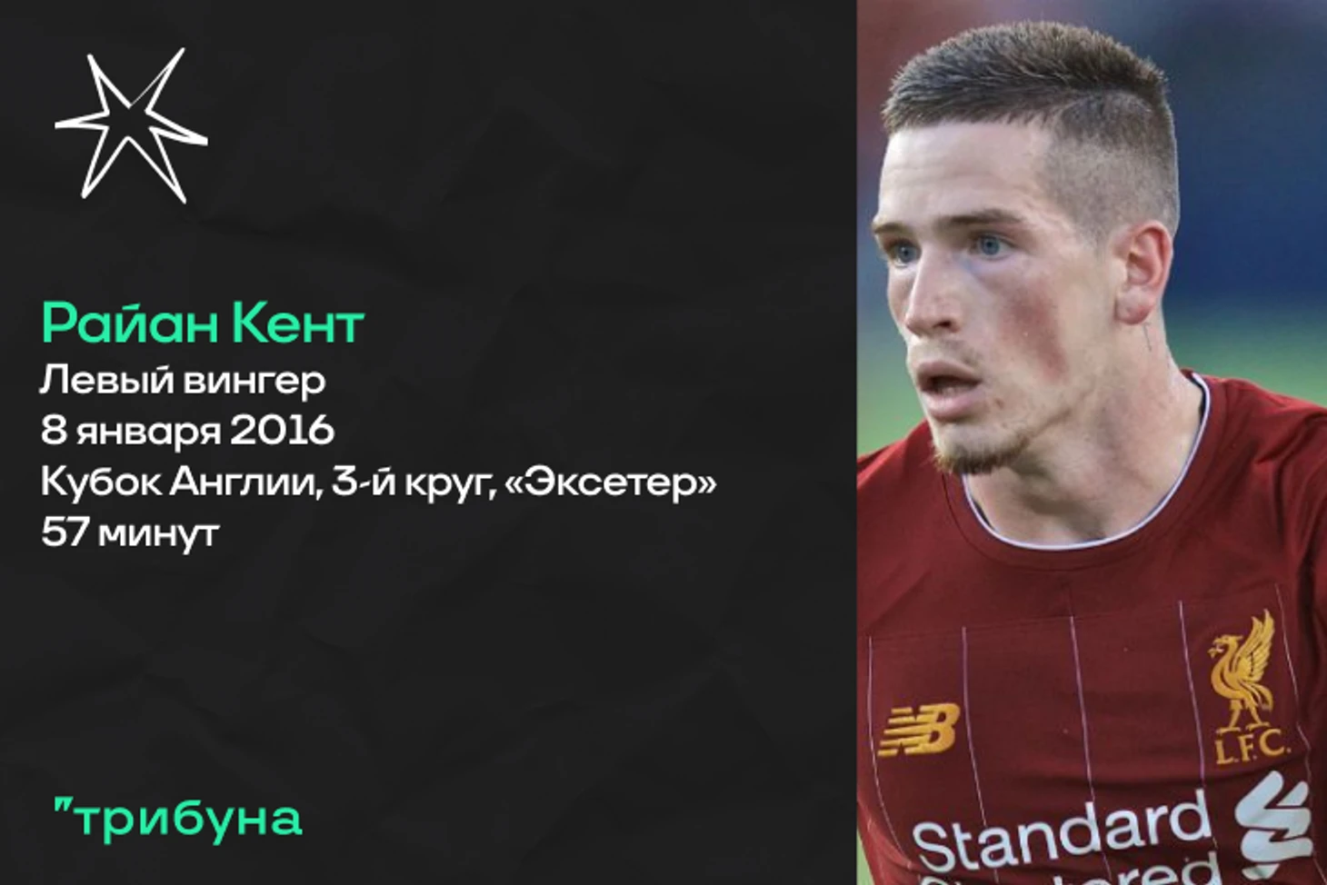 Довольно известный английский вингер Райан Кент является еще одним воспитанником «мерсисайдцев». Он дебютировал за основу сразу после возвращения из аренды, проведенной в составе «Ковентри». Тогда Райан провел пятьдесят семь минут в матче с «Эксетером» и был заменен на Педро Чиривелью. Затем были еще аренды в «Барнсли» (успешная) и немецкий «Фрайбург» (провальная), после чего на несколько лет жизнь Кента оказалась связана с шотландским «Рейнджерс». Клуб из Глазго сначала арендовал, а затем и выкупил англичанина за 7.20 миллиона Евро. Там он провел пять очень сильных сезонов, за это время набрав практически девяносто баллов по системе гол+пас и даже стал Чемпионом Шотландии. В 2023 году состоялся неудачный трансфер в «Фенербахче», после чего был полугодичный период без команды. С марта нынешнего года двадцативосьмилетний Райан выступает в МЛС за «Сиэтл Саундерс».