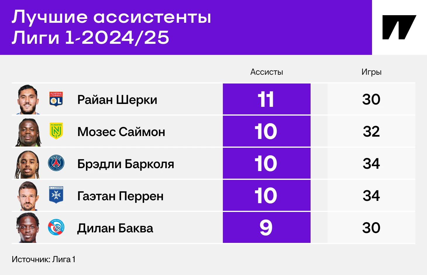 ● Лучшим ассистентом в последнем туре стал 21-летний Райан Шерки из «Лиона», гонка была очень плотной.