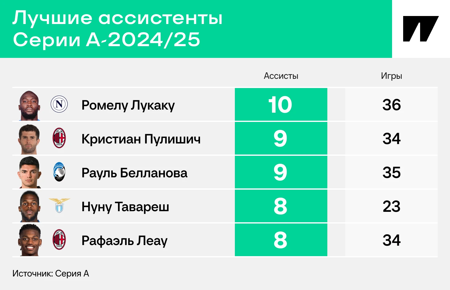 ● У Ромелу Лукаку тоже 14 голов, но он провел на четыре матча больше Тюрама. Бельгиец раскрылся у Антонио Конте и в подыгрыше: впервые отдал 10 голевых за сезон лиги, лучший ассистент турнира.