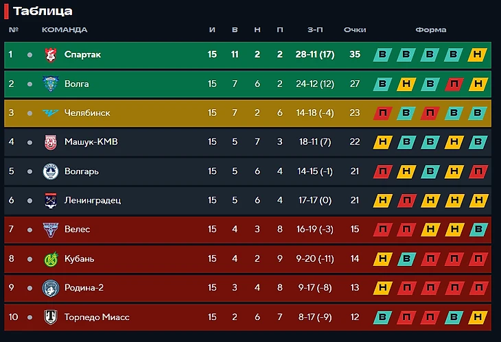 В Подольске «Велес» так же ведущий борьбу за право остаться в дивизионе «Золото», проиграл ульяновской «Волге» 1-2. Этот результат приблизил команду из Ульяновска к решению задачи по выходу в первую лигу. «Волга» сохранила вторую строчку и увеличила отрыв перед заключительным отрезком, от преследователей. Домашний матч с «Машуком», может стать финальным аккордом по возращению в «МелБет Первый Дивизион». Шансы москвичей на сохранение места, все меньше. Таблица после 15 туров уже наглядно показывает расклад сил в этом сезоне.