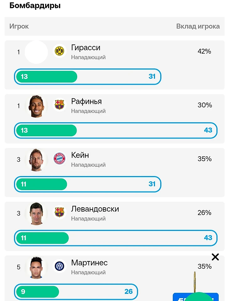 Среди лучших бомбардиров можно отыскать Лаутаро Мартинеса, он входит в 5-ку лучших.