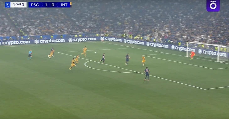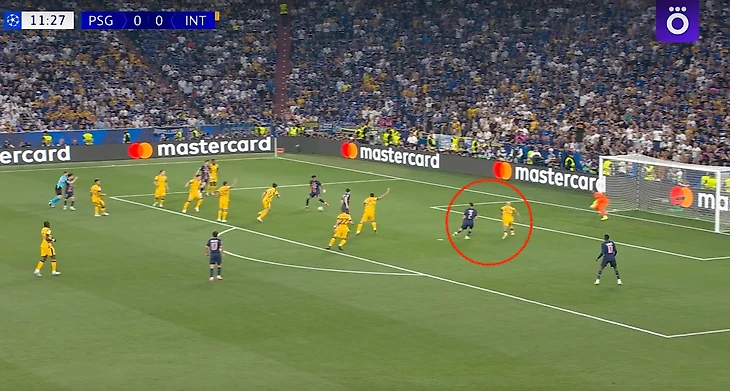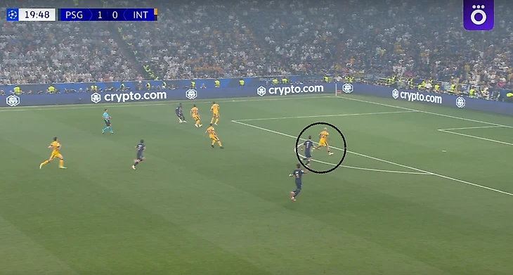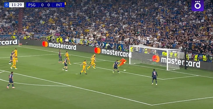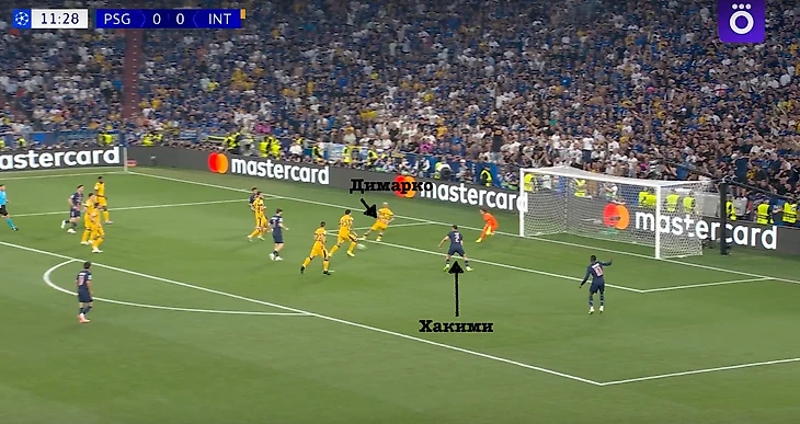 Димарко допустил грубейшую позиционную ошибку и оставил Ашрафа Хакими практически перед пустыми воротами. «ПСЖ» вышел вперед.