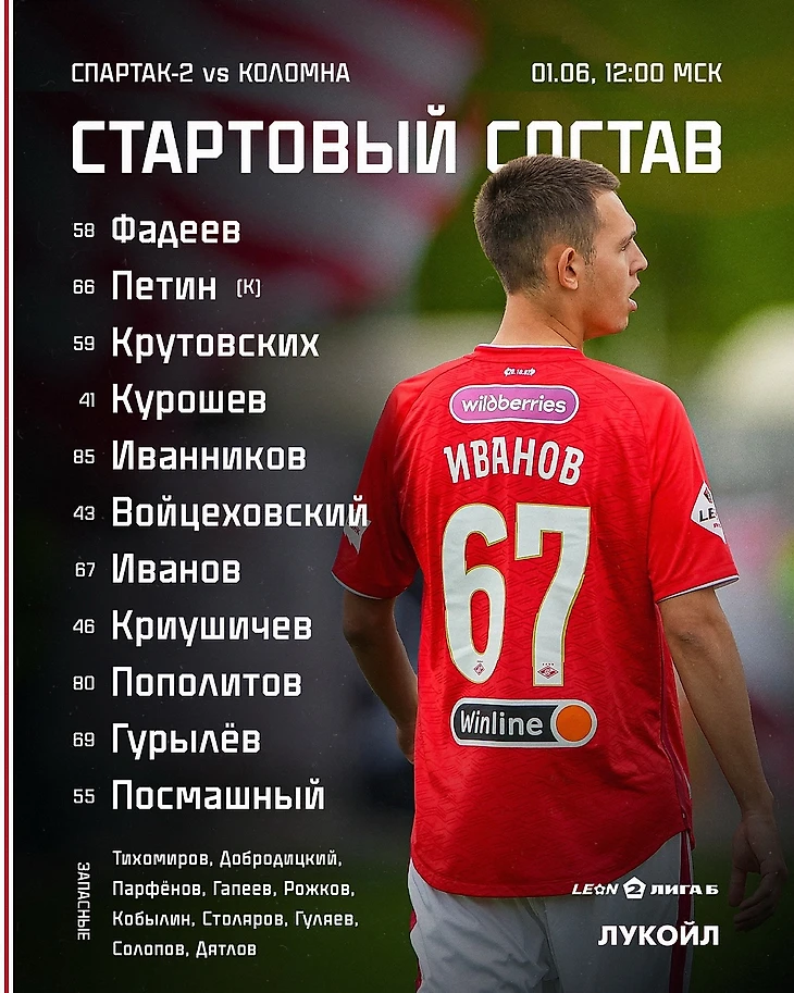 «Спартак-2»: Фадеев, Петин (к), Курошев, Крутовских (Гапеев, 67), Иванников (Добродицкий, 64), Войцеховский, Криушичев (Кобылин, 64), Иванов, Гурылёв (Парфёнов, 72), Пополитов (Дятлов, 64), Посмашный.