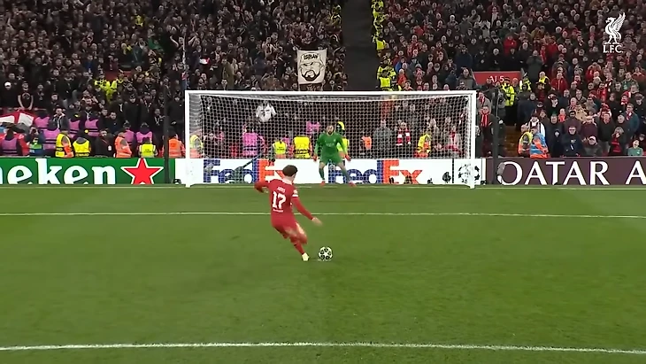 Разве можно предъявить претензии бьющему здесь игроку.?. Удар прямо в угол по низу. Но он бьёт не кому - то там, а Джиджи Доннарумме. Доннарумма отлично складывается в прыжке и дотягивается до мяча правой рукой. То есть если уже Джиджи угол удара угадал, то очень высока вероятность, что он отразит. При этом, конечно же, стоит отметить его умение несмотря на свои габариты и высокий рост, прыгать в самые труднодоступные углы и доставать от туда мячи.