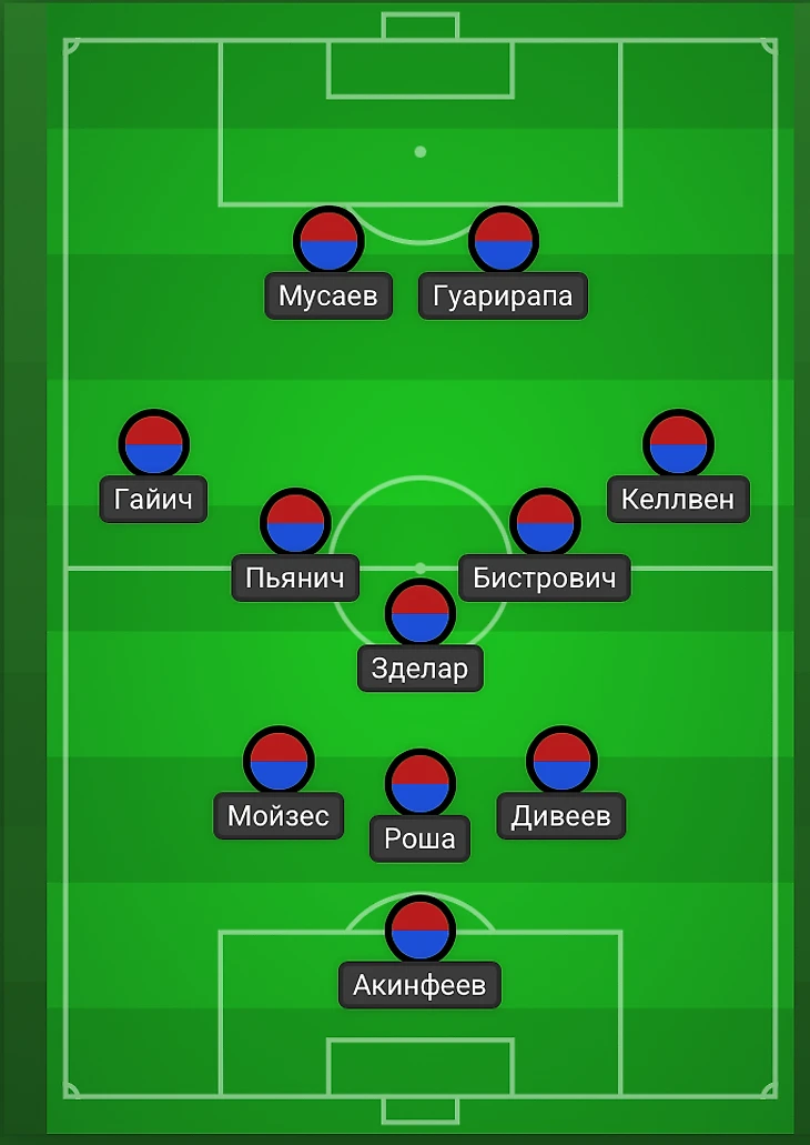Ну что ж, начнем наш рассказ! Для удобства я поделил сезон на отрезки по паузам на сборные, чтобы удобнее было оценивать динамику изменений в игре и статистике команды. Итак, летом 2024 года ЦСКА возглавил Марко Николич. После тягучего футбола и неудовлетворительного результата ЦСКА под руководством Владимира Федотова болельщики скептически оценивали перспективы армейцев в новом сезоне, однако, несмотря на ужас весны 2024 года, многие поклонники ЦСКА были недовольны увольнением Федотова и всю осень говорили, что он работал успешнее Николича, но не будем забегать вперед. Команда была собрана под Федотова и его консервативную схему 3-4-3, после назначения Марко я, как и многие другие болельщики, предполагал переход на четверку защитников и знаменитый ромб в центре, но балканец сразу дал понять, что смены схемы не будет до зимних сборов. К старту сезона команду, которая после неудачного прошлого сезона испытывала серьезный кадровый голод, пополнили Секу Койта, Рифат Жемалетдинов и Данил Круговой (переход из Зенита был оформлен зимой). Также был куплен Артем Шуманский, который так и остался загадкой для болельщиков. Этого явно было недостаточно, ведь ситуацию осложнял потенциальный уход Федора Чалова, Виктора Давилы, Виктора Мендеса. На сборах команда показывала неплохой футбол, но все равно было ощущение, что нехватка игроков сыграет с армейцами злую шутку по ходу сезона. Давайте перейдем к первому отрезку сезона.