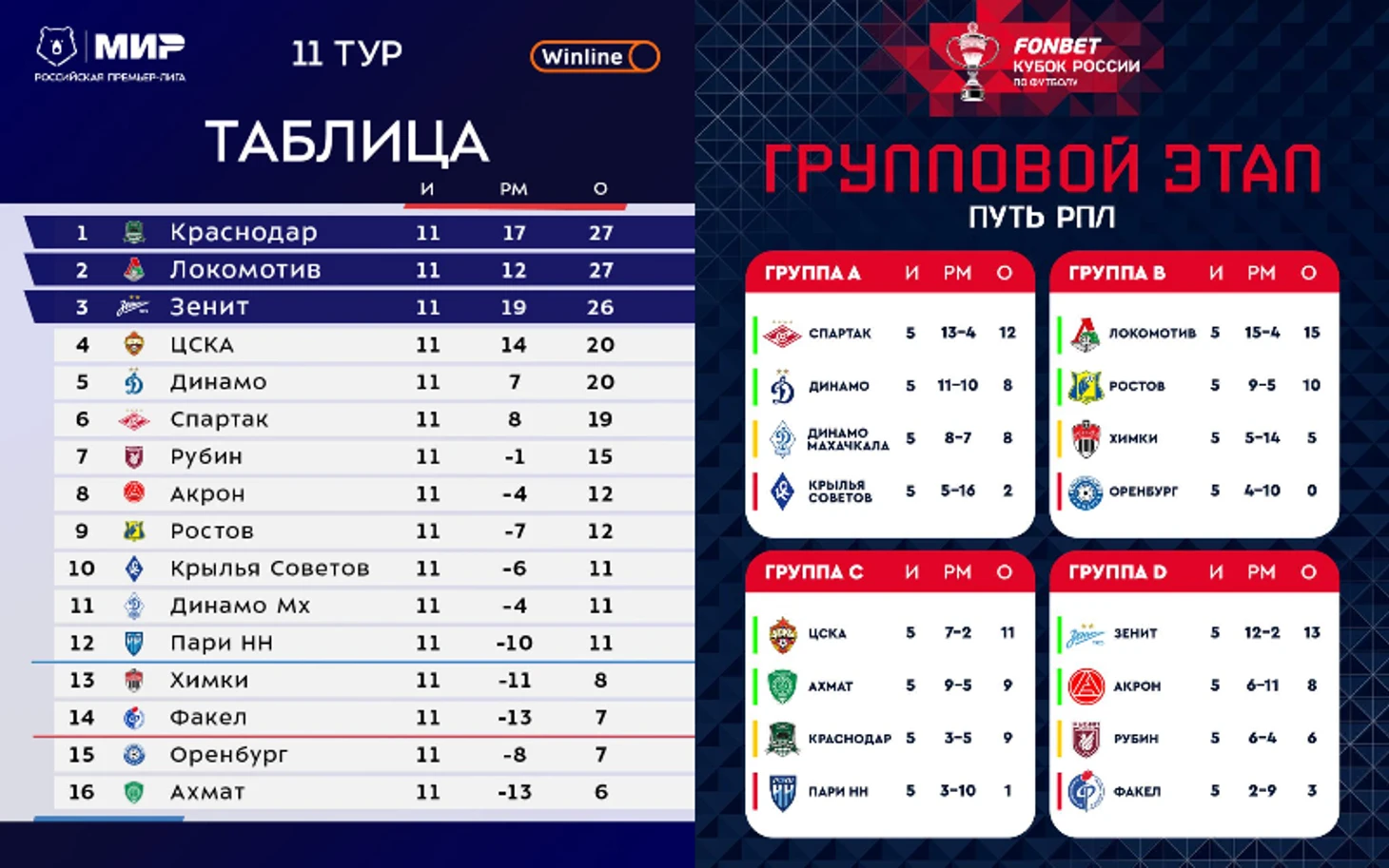4. 23 ноября - 8 декабря (16-18 тур МИР РПЛ; ответный матч 1/4 Пути РПЛ Fonbet Кубка России)