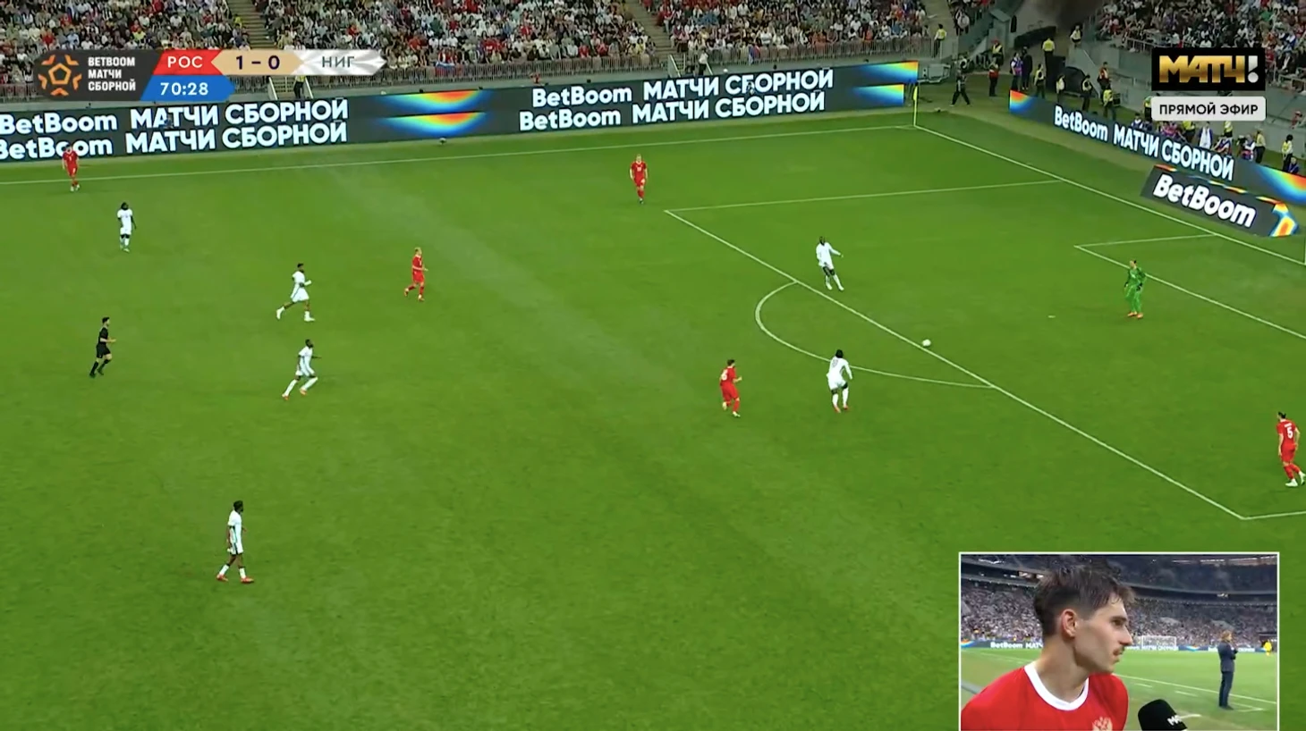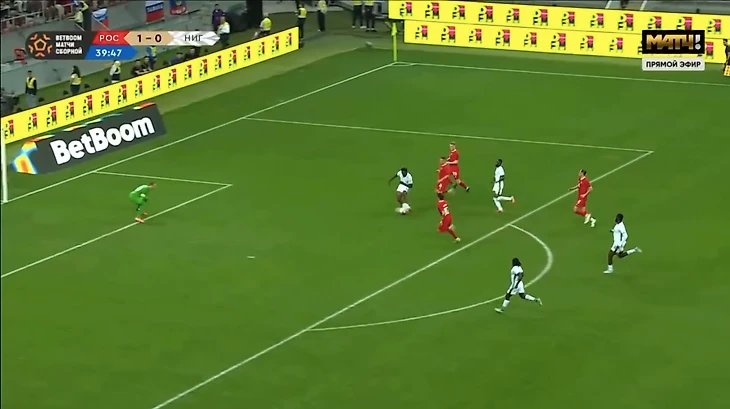 В конце первого тайма нигерийцы едва не сравняли. Фисайо Деле-Баширу выскочил один на один и врезал в упор без помех – но Матвей Сафонов идеально выкинул руку и спас. Капитан сборной России потащил удар с очень близкого расстояния.