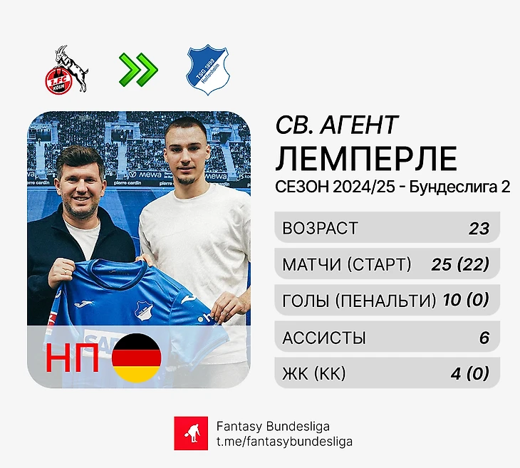 Пришли в «Кельн» экс-игрок «Фортуны» Йоуханнессон с 14 голевыми действиями в сезоне и нападающий Рагнер Аче из «Кайзерслаутерна» (18+1 по гол+пас) – последний выглядит многообещающе.