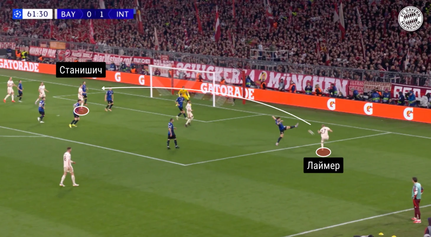 Особенно есть сомнения в таком подходе, когда линия обороны выглядит вот так: Лаймер – Станишич – Дайер – Боэ. В итоге «Бавария» не выглядела хуже «Интера» в Лиге чемпионов, но именно высокая линия и попытка сыграть в прессинг привели к решающему пропущенному голу в первой игре.