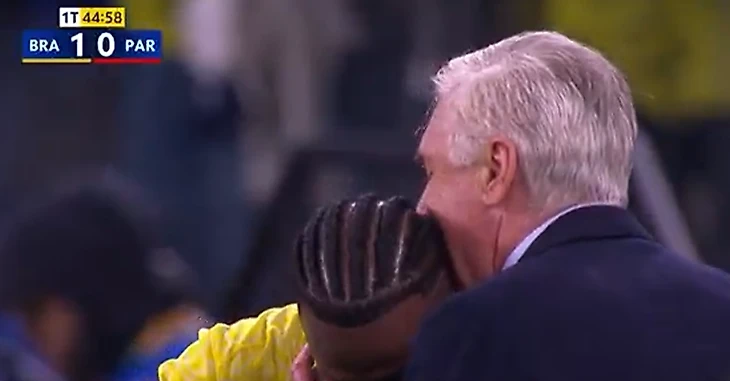 Винисиус Жуниор отпраздновал гол за Бразилию с Анчелотти – это был первый матч сборной с итальянцем
