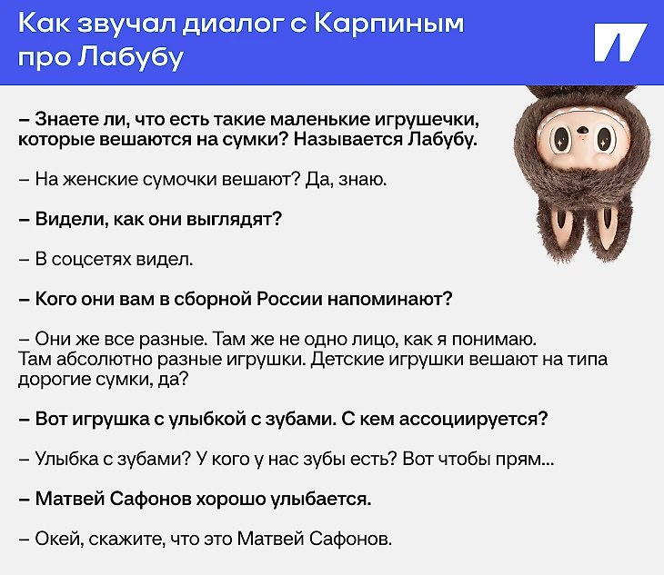 – Сразу после тебя Карпина спросили про Лабубу. Там нет никакой привязки к футболу. Это допустимо?