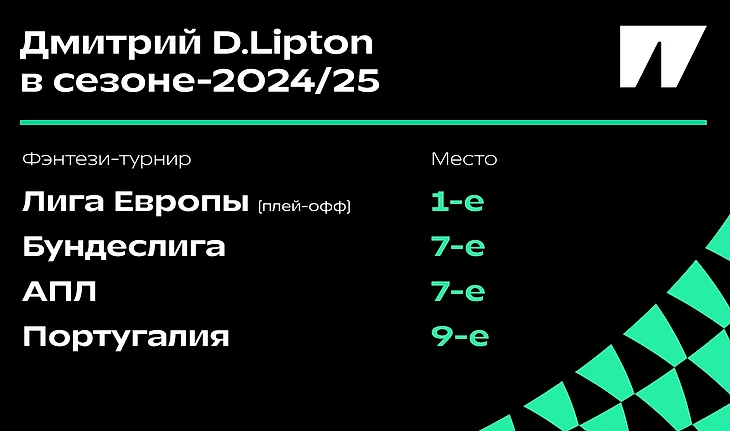 На Спортсе’’ уже вышло интервью с победителями фэнтези РПЛ и АПЛ, пришло время поговорить с еще одним героем сезона: Дмитрий D.Lipton попал в топ-10 сразу в 3 лигах, а еще выиграл турнир по плей-офф Лиги Европы.