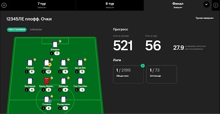 Совет фэнтезистам – не бросать, стабильно делать замены, потому что турниры сами по себе длинные. На дистанции что угодно может произойти. Если что-то не получилось в начале, это не значит, что и дальше не будет получаться.