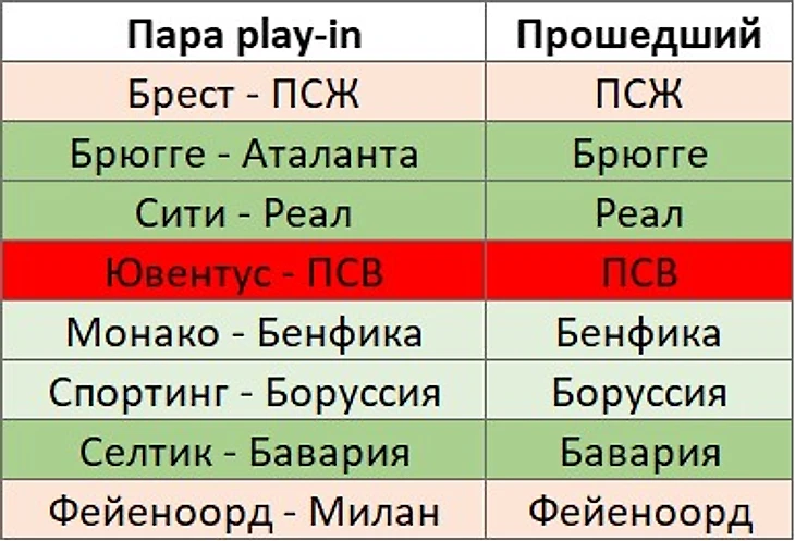 PS. С позиции послезнания странно выглядит по вашей табличке что исход пары Брест-ПСЖ был слабо прогнозируемым)