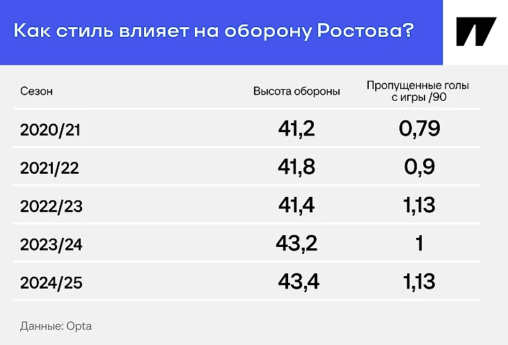 Безусловно, часть оборонительных проблем спровоцирована стилем. С каждым годом «Ростов» при Карпине агрессивнее давил и выше встречал соперника, из-за чего получал атаки на пространстве. Можно провести корреляцию с пропущенными голами с игры – ощутимого прогресса нет очень давно.