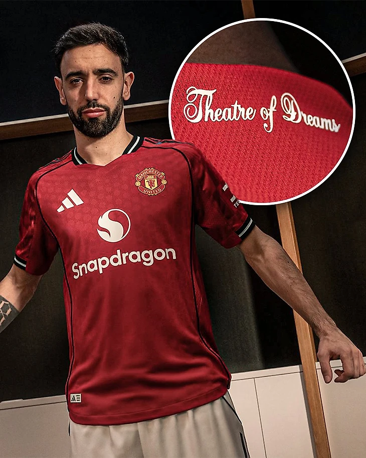 Дизайн комплекта отсылает к «Олд Траффорду», на задней части воротника красуется культовое «Театр мечты».